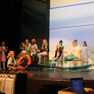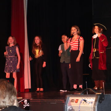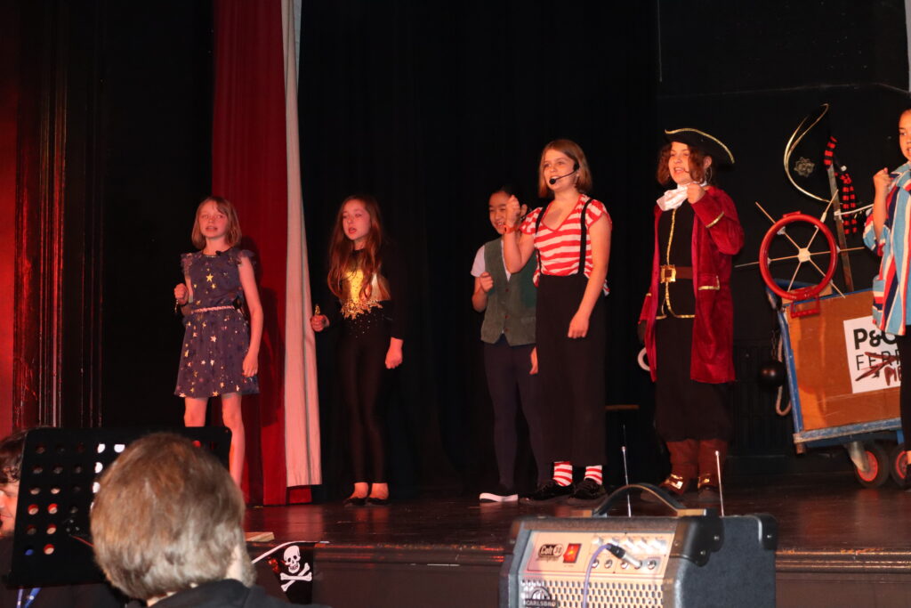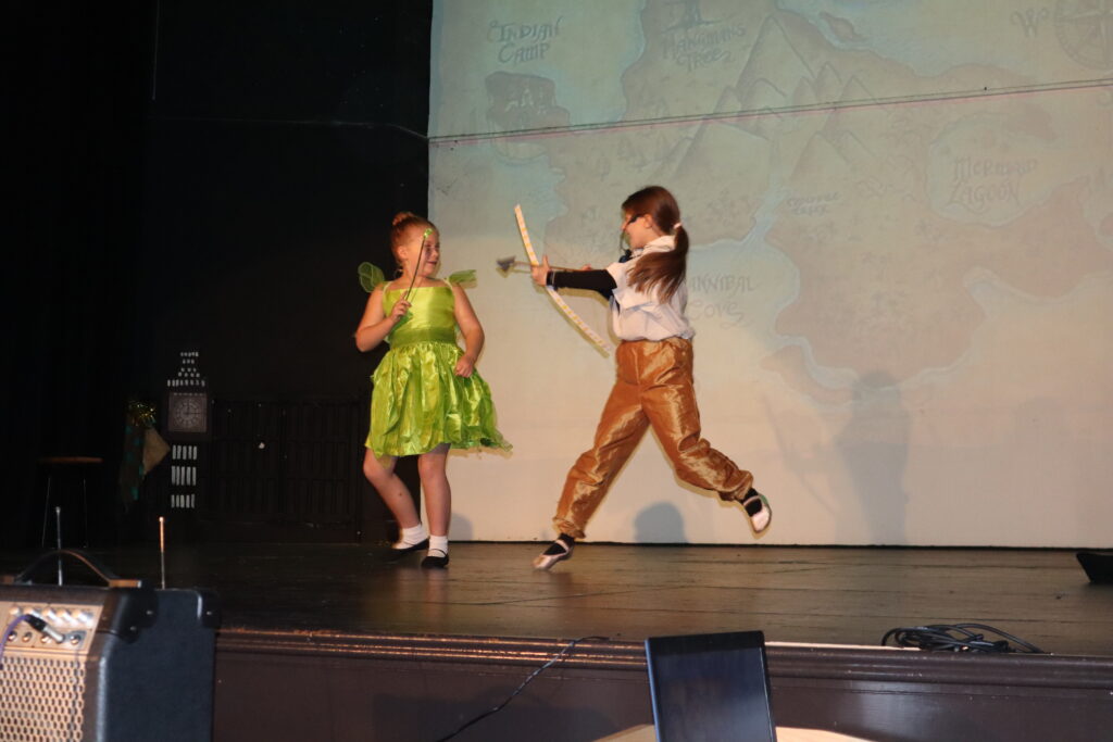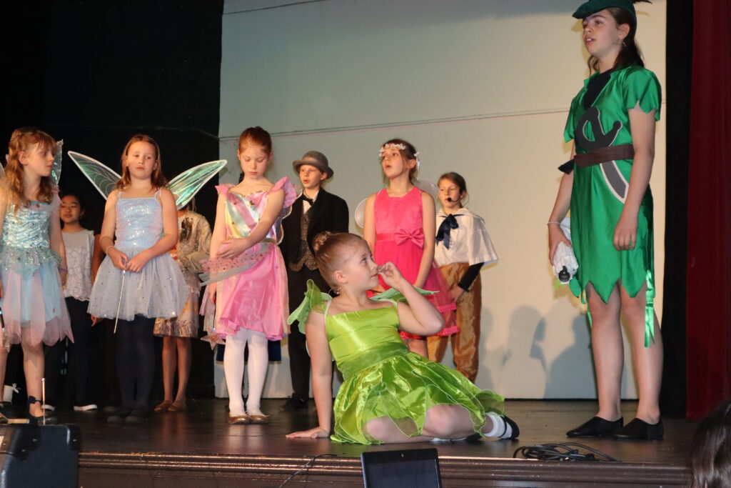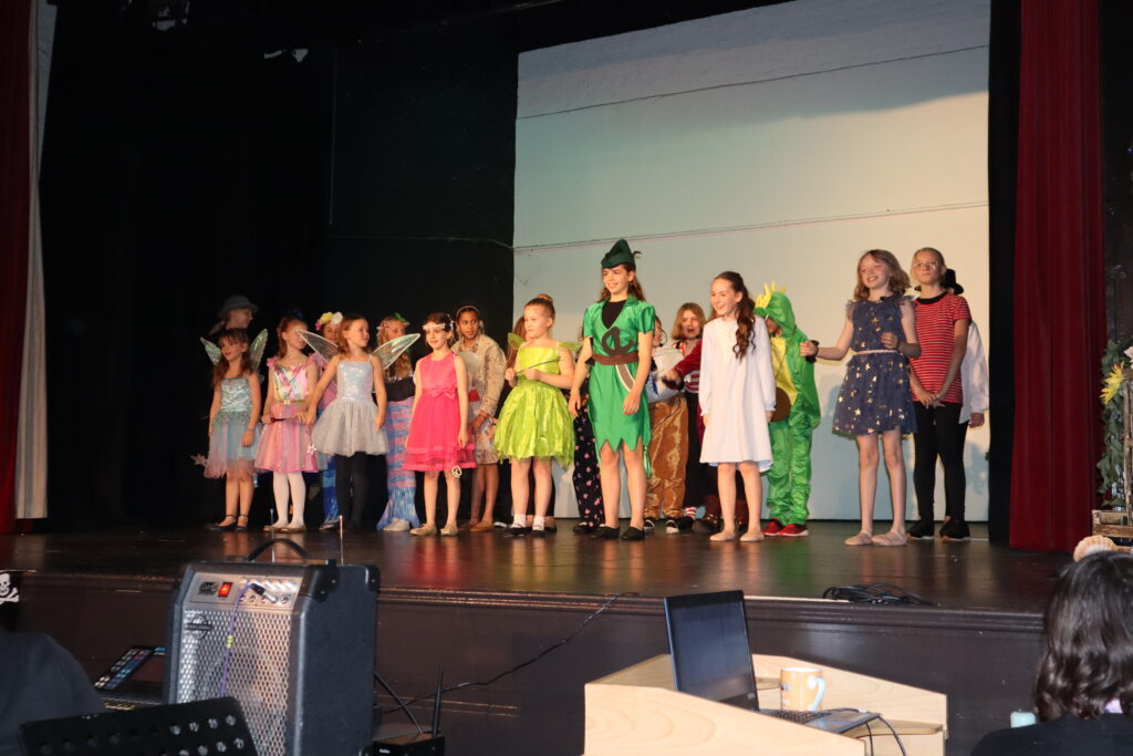 Charlotte, Alexa, Lucy & Faye made an impeccable entourage for Tink. Whenever they took to the stage, they remained in character smiling and twirling as playful fairies do. Daisy, Alexandra, Louise, Venus and Francesca’s portrayal of Neverland’s mystical mermaids perched on stools was enchanting.