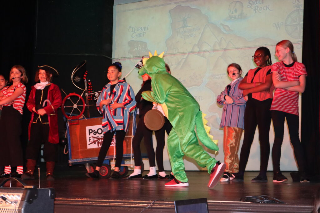 The musical adaptation was cast tremendously, with every performer giving their all to the role. Pupils across the year groups displayed excellent stage presence and audience command. As the story began, Nora & Susannah’s narration superbly set the scene of the tale. Isabella, Eliza, Lorelei, Jessica L, Clemmie and Francesca brought the Darling family to life, displaying the family bonds and the eager excitement of the children.