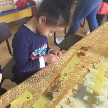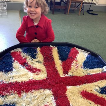 The festivities continued throughout the latter half of the week as the children in Reception and Year 1 took part in various jubilee craft activities. Pre-School enjoyed listening to relaxing classical music whilst they crafted paper crowns, complete with sparkling jewels and designed pasta necklaces to wear. Using colourful rice and sand, they created sand art flags in the shape of the Union Jack and made their very own castle.