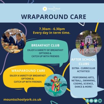 The Mount Junior School has recently extended its Wraparound Care offering. As of April 2022, comprehensive wraparound care will be available for all Junior School pupils.